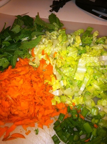 4 Cups grated green papaya (I buy it pre-grated at the market, looks like spaghetti)