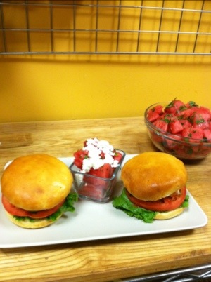 Serve burgers on bun (find my gluten free favorite at http://www.sweetchristinesglutenfree.com) with lettuce, tomato and my yogurt sauce.