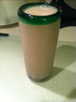 Place all ingredients in a blender. Start on a low setting until banana begins to break up and then turn to high for a minute or two. Pour into a nice tall glass and enjoy!!!