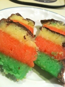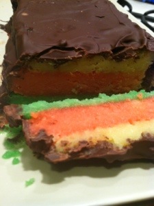 My favorite cookie as a kid was always the Italian Rainbow Cookies. The fun, sprinkles and choclate all in a cute package. Plus my grandmother loved marzipan and I could never get enough of the sweet almond goodness.