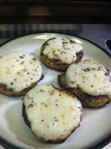 Once eggplant is done rinse is well under the sink well to remove salt. Coat each piece with cracker crumb mix and place bake on baking sheet in a single layer. Bake coated eggplant for 10 min at 350 degrees. Then remove eggplant and layer in a casserole dish alternating layers of eggplant and tomato sauce. Make sure to coat the top layer well with sauce. Last, break up cheese and cover the top. Spray the top with none stick spray and bake at 350 degrees for 30-40 minutes. Cook uncovered for the first half and then cover with tin foil for the last 20 minutes.
